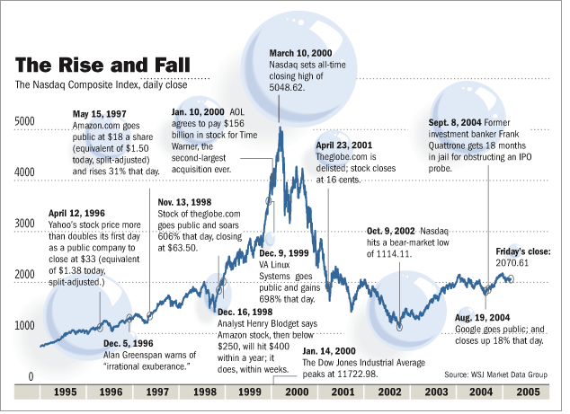 By early 2000 expectations for internet stocks had become detached from reality. Share prices already assumed years of explosive growth.